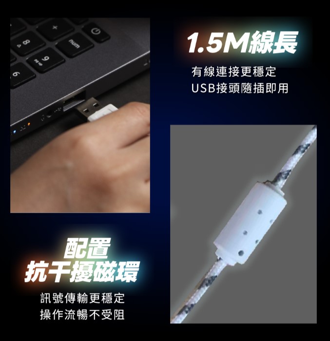 ‧ 抗干擾磁環,訊號傳輸更穩定,操作流暢不受阻