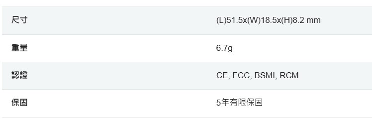 尺寸:(L)51.5x(W)18.5x(H)8.2 mm