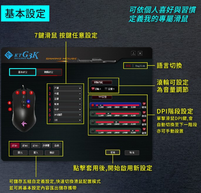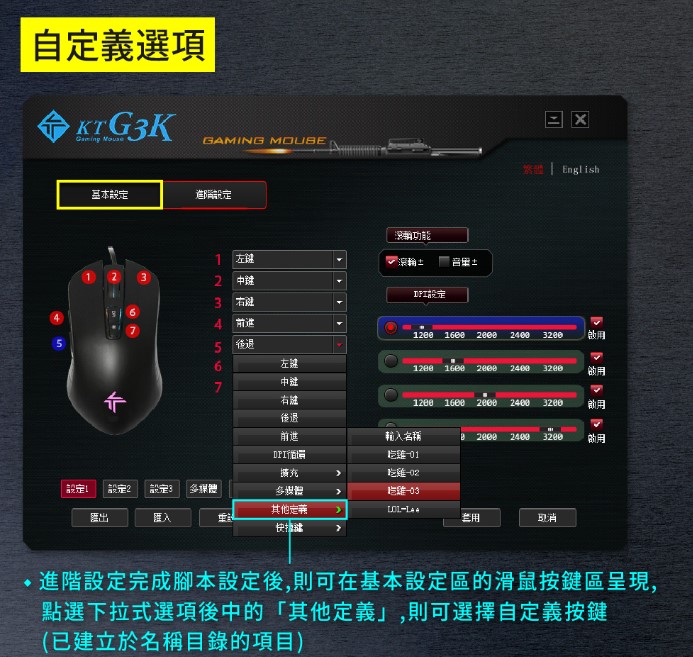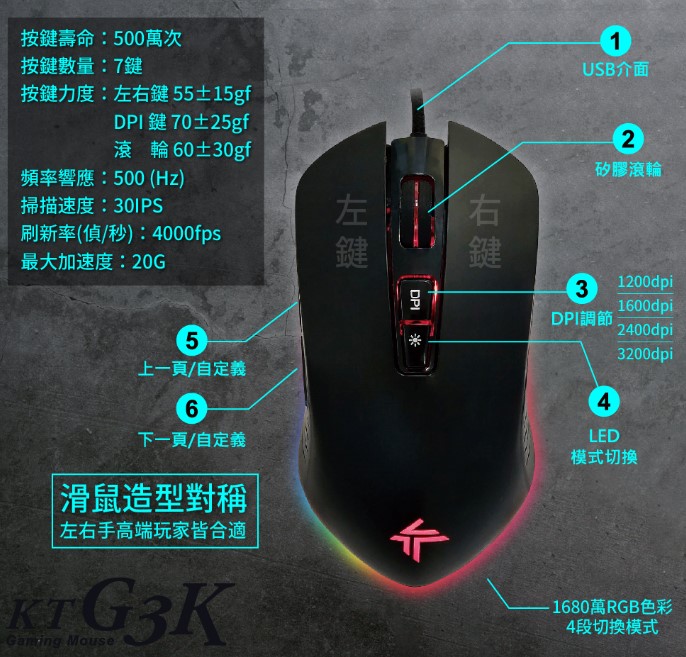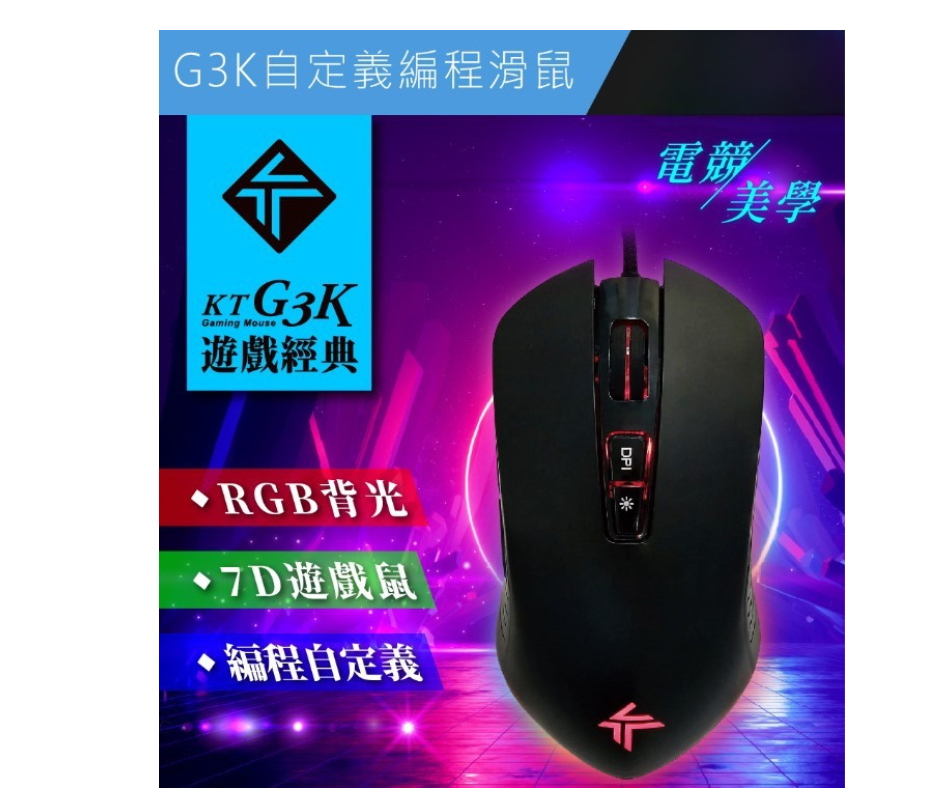 ◆產品名稱:G3K電競光學自定義編程滑鼠 白盒裝~需自行下載驅動程式和電子說明書