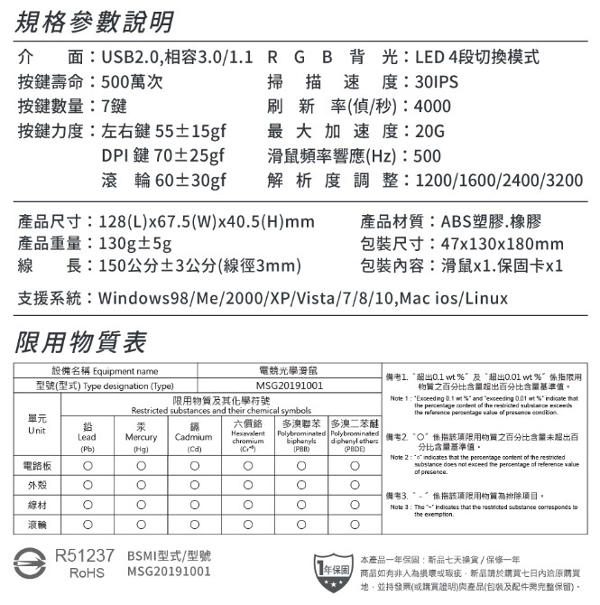 包裝內容 : 滑鼠×1.簡易說明書×1